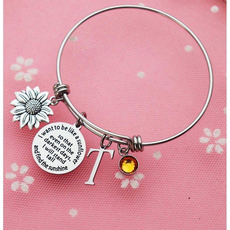 - 26 Letters A-Z for your choices, and keep your love close at her hand. these initial bracelets make great gifts for Mother,Daughter,Grandma, Aunt or Best Friend etc.The attitude like the sunflower, looking for sunshine, it makes a wonderful gift to bring joy to your loved one.