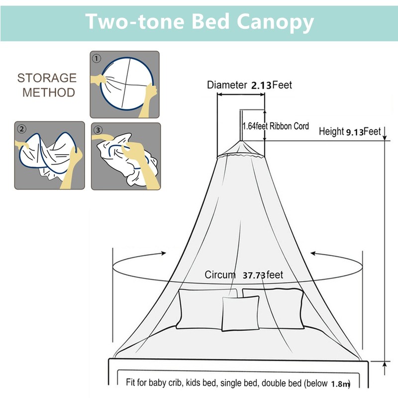 - ❖ FULL BED CANOPY - Steel Ring Diameter * Height * Hem Circumference: 1.97 * 8.86 * 34.45ft, merely hang it on the hooks which sticked on the ceiling. After receiving the bed canopy, gently shake to start use (Don't touch the sharps or pull hard).