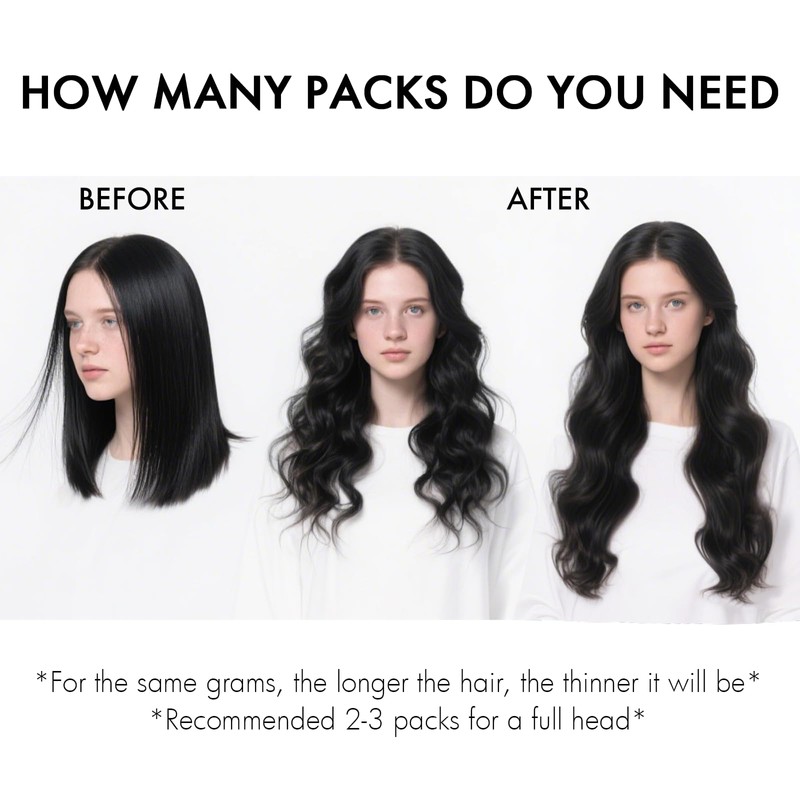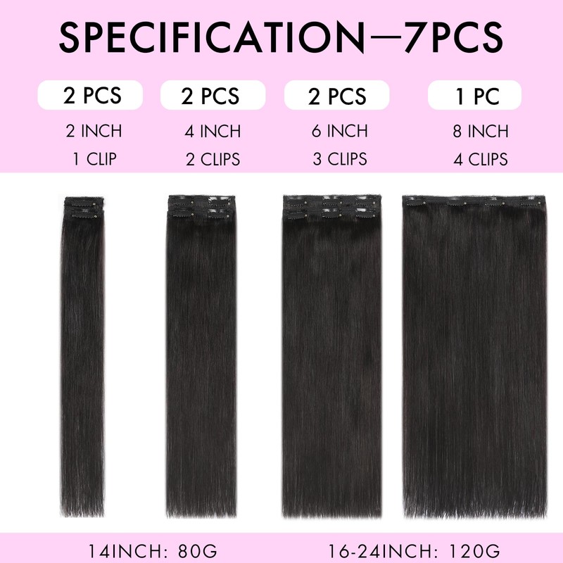 - Wide range of sizes: our 7-piece set of clip-in human hair extensions include 14-24 inches, 14 inches (80 g) and 16-24 inches (120 g), perfect for different hair densities - lightweight, comfortable and wearable all day long