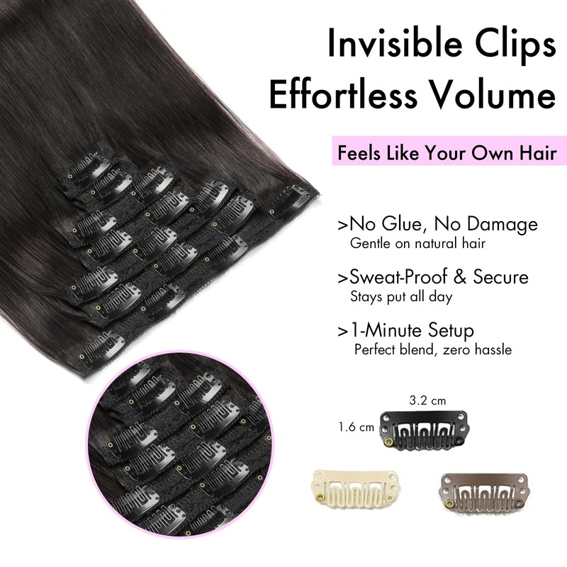 - Natural invisible design: thanks to high-quality clips and human hair extensions, the strands sit non-slip and skin-friendly. Attaches in seconds, keeps stable even during sports - completely natural and comfortable