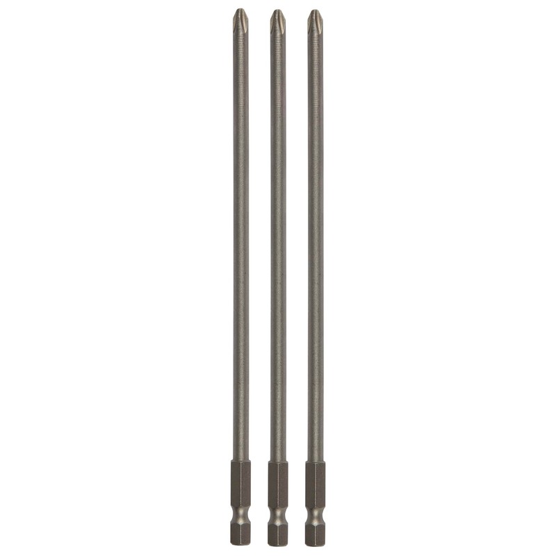 - 3-PIECE BIT SET: 3 identical PH2 bits made of steel with a length of 165 mm are supplied for utilisation with drywall screwdrivers with magazine attachment.