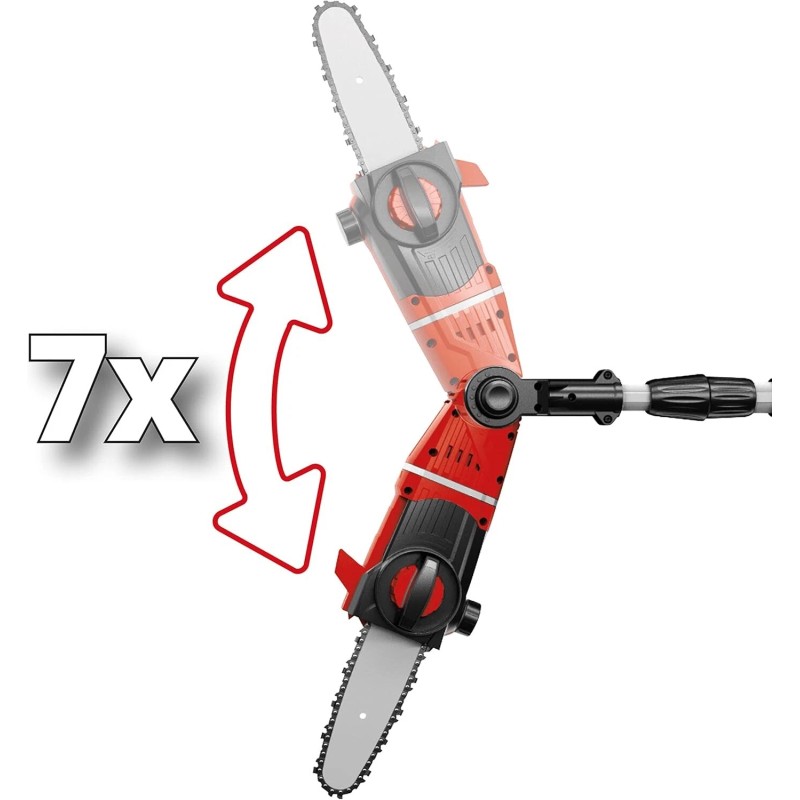 - ADJUSTABLE: 7-position tiltable motor head and 90° swivelling attachment of the pole pruner with the 4-position tiltable main grip.
