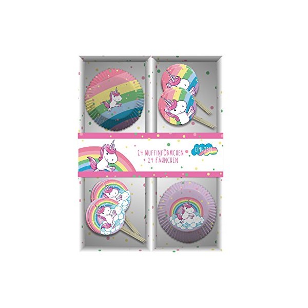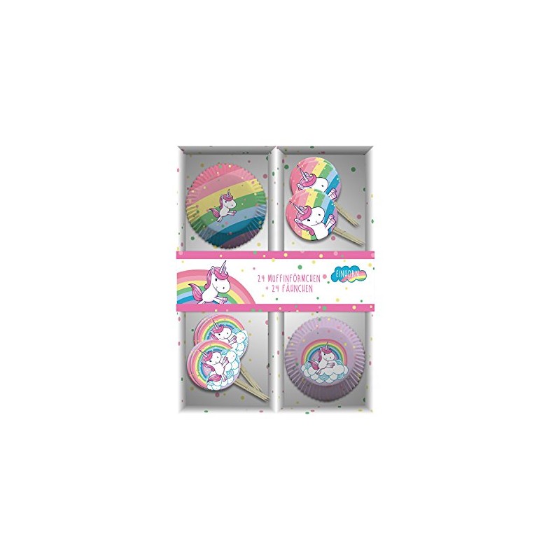 Einhorn Muffin Backset im Geschenkkarton: 24 Muffinförmchen + 24 Fähnchen