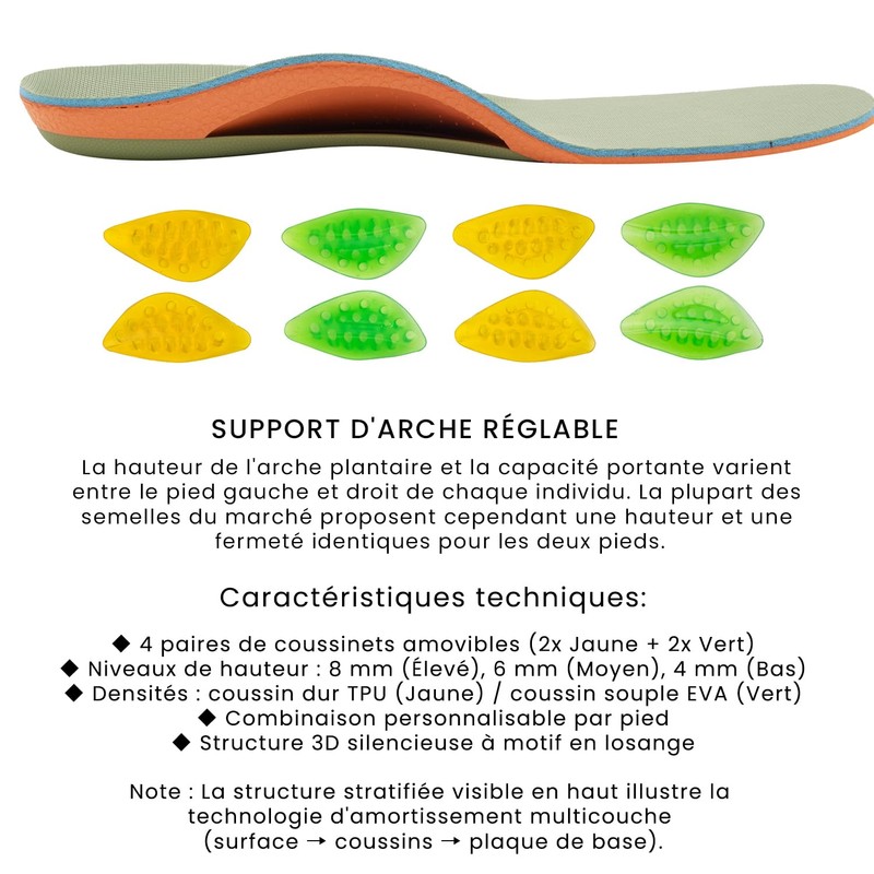 - [Vielseitige Einlagen] Diese einstellbaren Gewölbestützen passen in Sneaker, Freizeitschuhe, Arbeits- oder Wanderstiefel. Wählen Sie nach Erhalt die Silikonstützpads entsprechend Ihrer Gewölbehöhe und gewünschten Weichheit aus. Entfernen Sie die Originaleinlagen und ersetzen Sie sie durch unsere. Selbst wenn Sie diese bereits zugeschnitten haben – kontaktieren Sie uns für eine individuelle Lösung.
