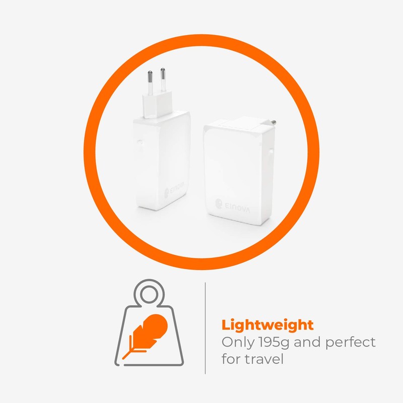 Einova Sirius 65W Lightweight Universal USB-C Laptop Charger for Travel | GaN Power Supply | Compatible with Apple & Android Smartphones, Laptops and Tablets - White
