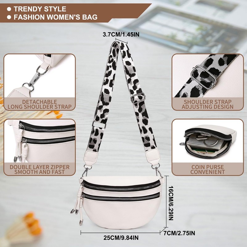EINYNIUER bauchtasche damen Leder Crossbody Bag Damen Umhängetasche Damen Breiter gurt Geldbörse Schultertaschen Mode Hüfttaschen Klein Moderne Breitem Schultergurt Weiss