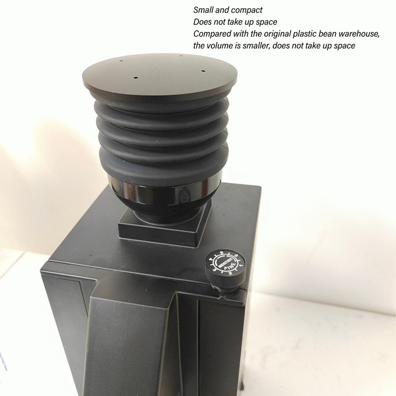 2. Stilvolles und kompaktes Design: Im Vergleich zu herkömmlichen Bohnenbehältern aus Kunststoff verfügt dieser Kaffeemühlenbehälter aus Silikon über ein modischeres und platzsparenderes Design, wodurch er für verschiedene Umgebungen wie Küchen, Wohnungen, Restaurants und Cafés geeignet ist.