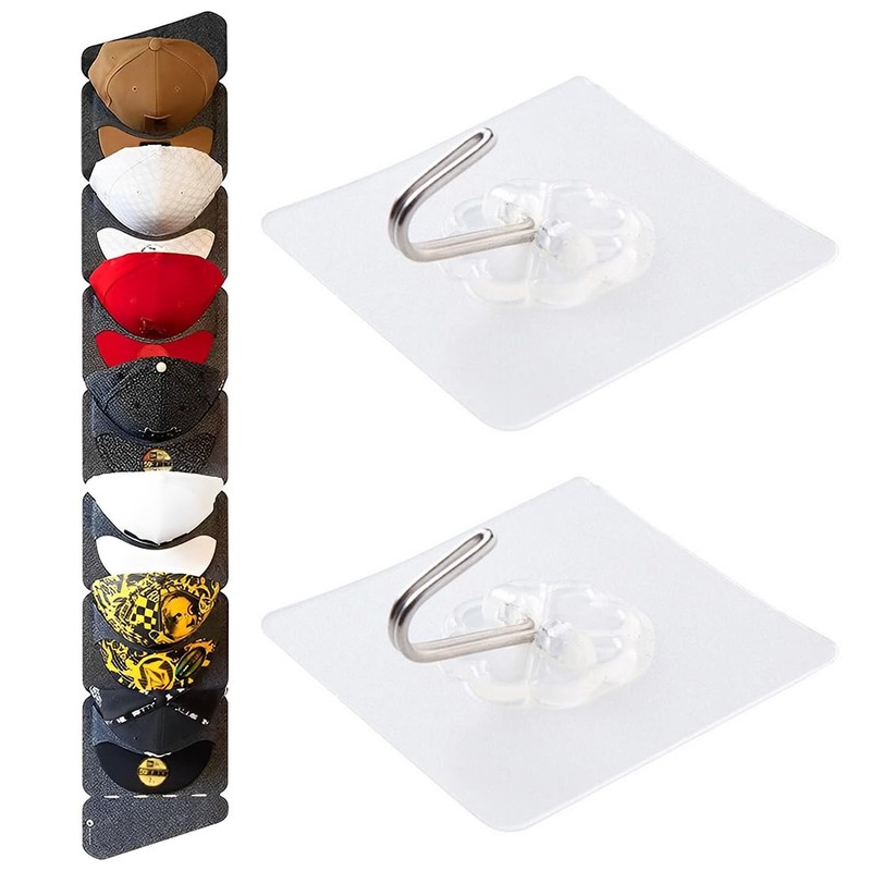 - Easy to assemble: the baseball cap holder is easy to assemble and very practical. No tools or DIY skills required, the cap holder has hanging holes on each hook and with our included adhesive hooks, it can be easily installed.
