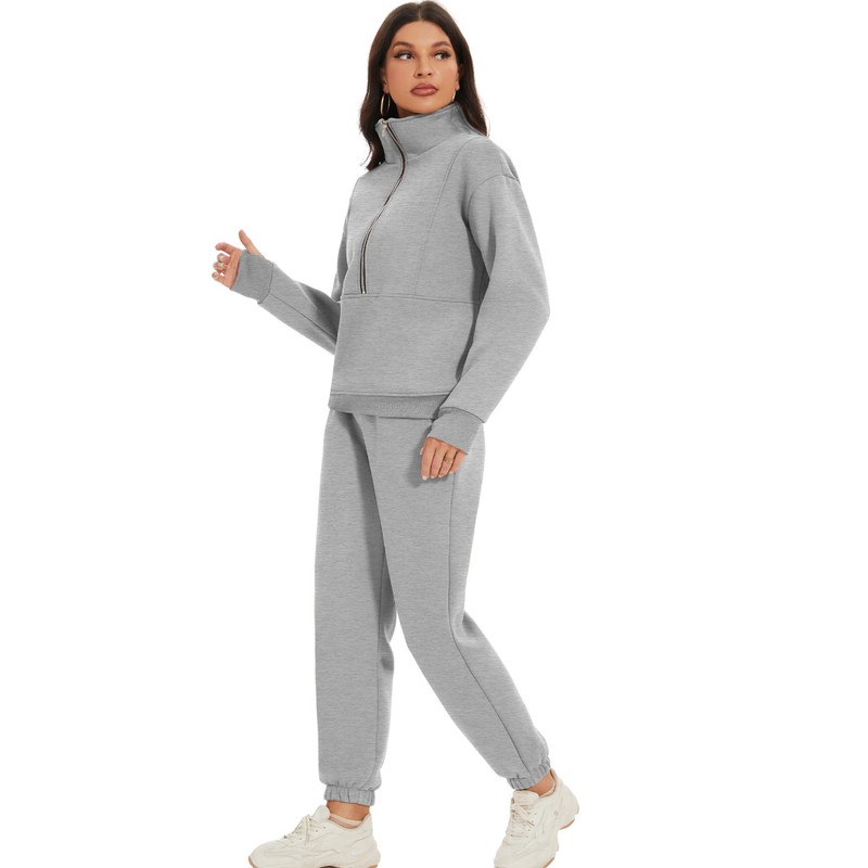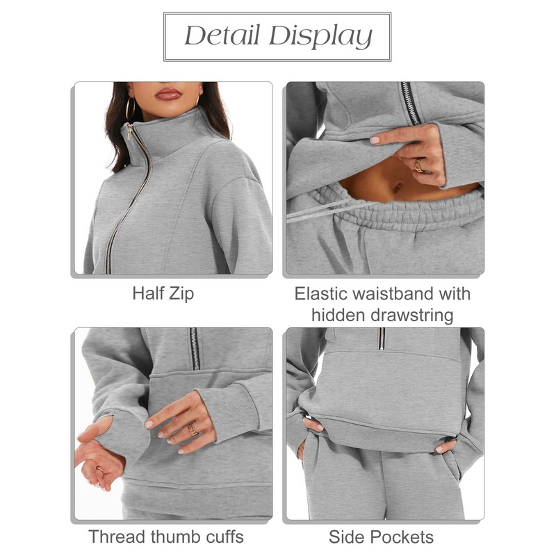 Eisctnd Womens Fleece 2 Piece Sweatsuit Lounge Set Long Sleeve Sweatshirt Jogger Pants Tracksuit Sweatsuit 2024 Fall Sets(Grey-L)