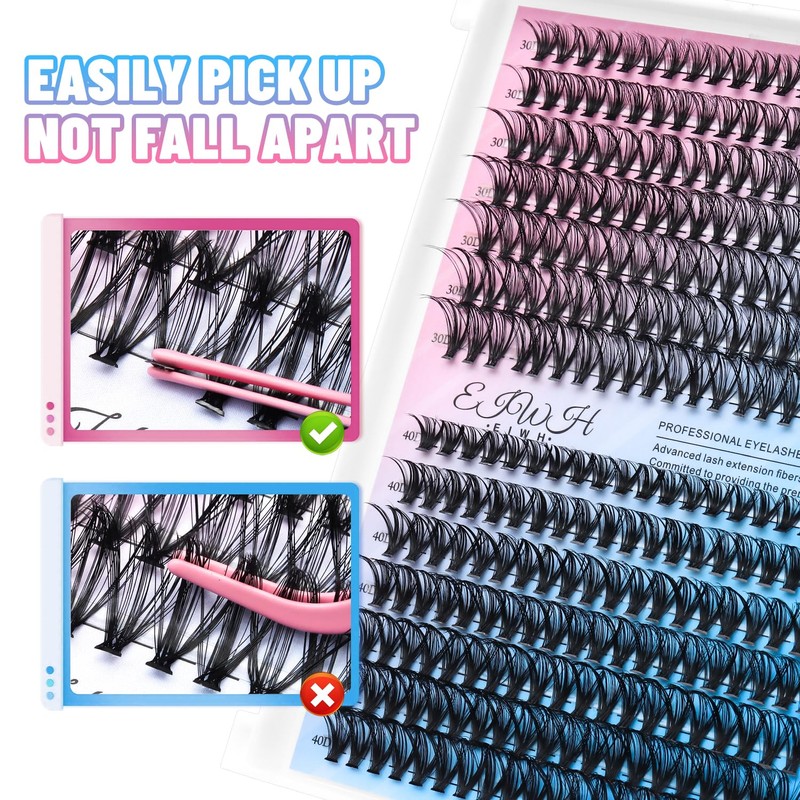 EIWH DIY Lash Extension Kit Volume Lash Clusters 30D+40D D Curl Individual 280 pcs Lashes Lash Clusters Kit Thick Eyelash Extension Kit Lash Bond Seal Lash Tweezers 10 pcs Eyelash brush (30D&40D KIT)