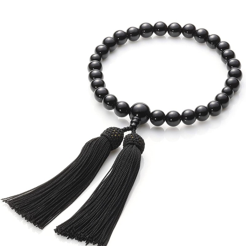 Eizen Nenjuya Prayer Beads for Women (Black Onyx, 0.3 inch (7 mm) Ball, Head Clasp Included, Nishijin Textile, Can be Used in All Sect Buddhist Prayer Beads, Handmade