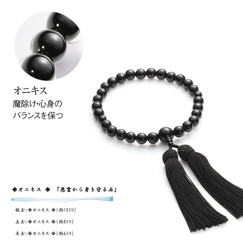 - (Features of Prayer Beads): Onyx; A "stone that protects you from evil spirits" and is said to awaken instincts inside the body and stimulate and improve motor skills. This prayer beads can be carried in formal occasions such as funerals and memorial services