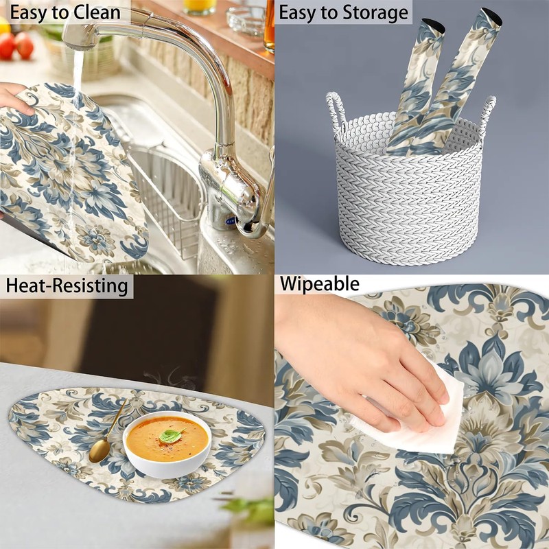 - 【Multi Purpose】The Non-Slip heat resistant dining table mat can be paired with various tables and is suitable for daily use. Suitable for any occasion, such as home kitchens, dining tables, coffee tables, restaurants, couple themed restaurants, hotels, or business offices. Very suitable for barbecue, parties, Christmas, Thanksgiving, and holidays. It can perfectly decorate your dining table and add more fun to your kitchen dining table.