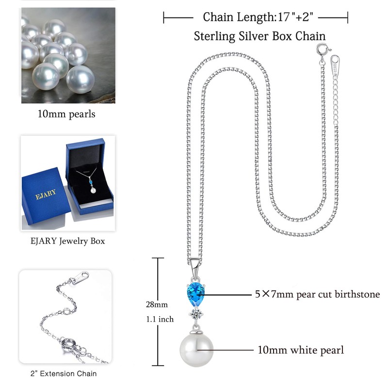 - Each sterling silver pearl aquamarine necklace for women comes with a high-end royal blue EJARY jewelry box for you to place the necklaces