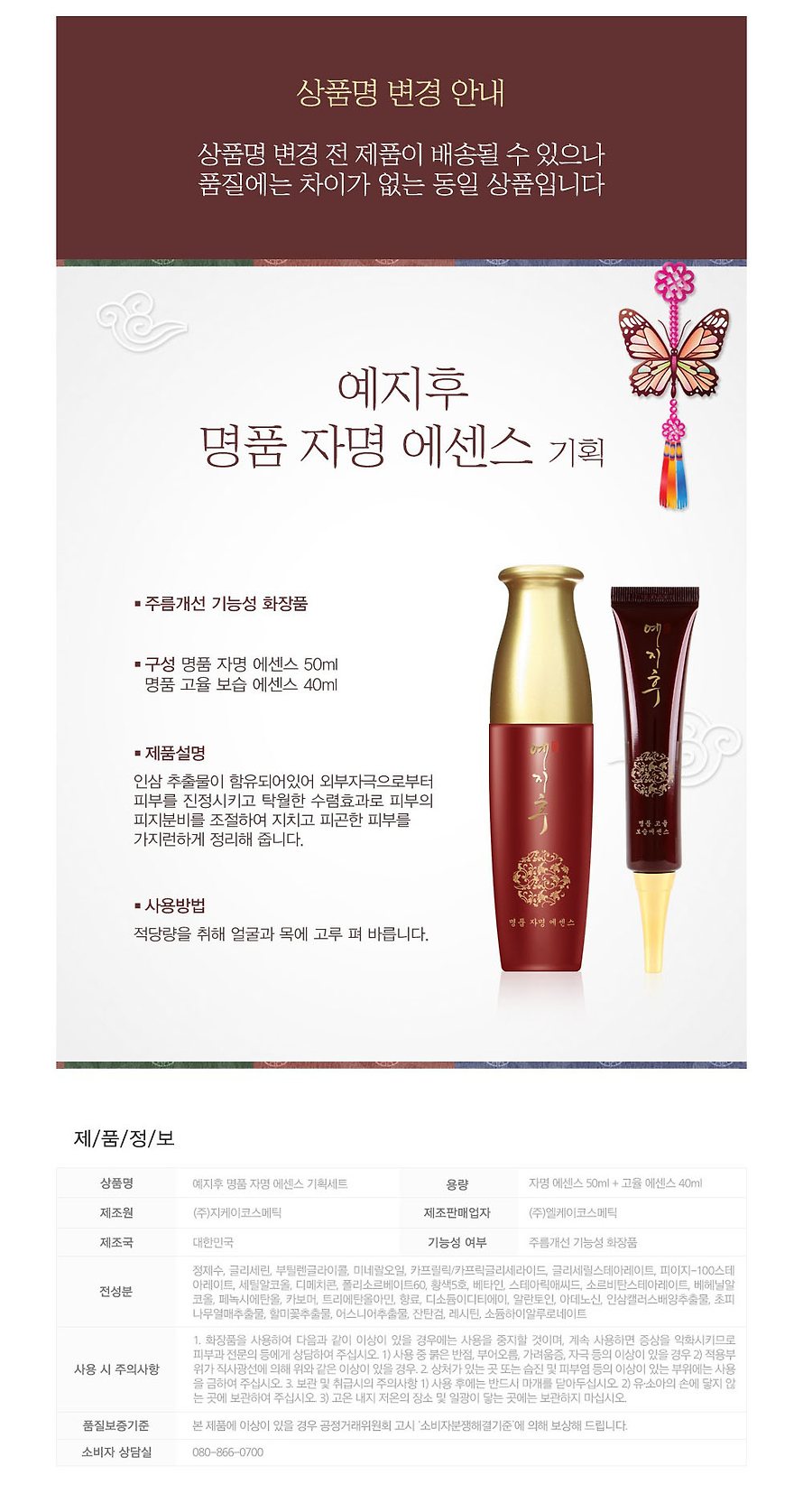 에지후 여자 화장품 자명 인삼 추출물 에센스 50ml