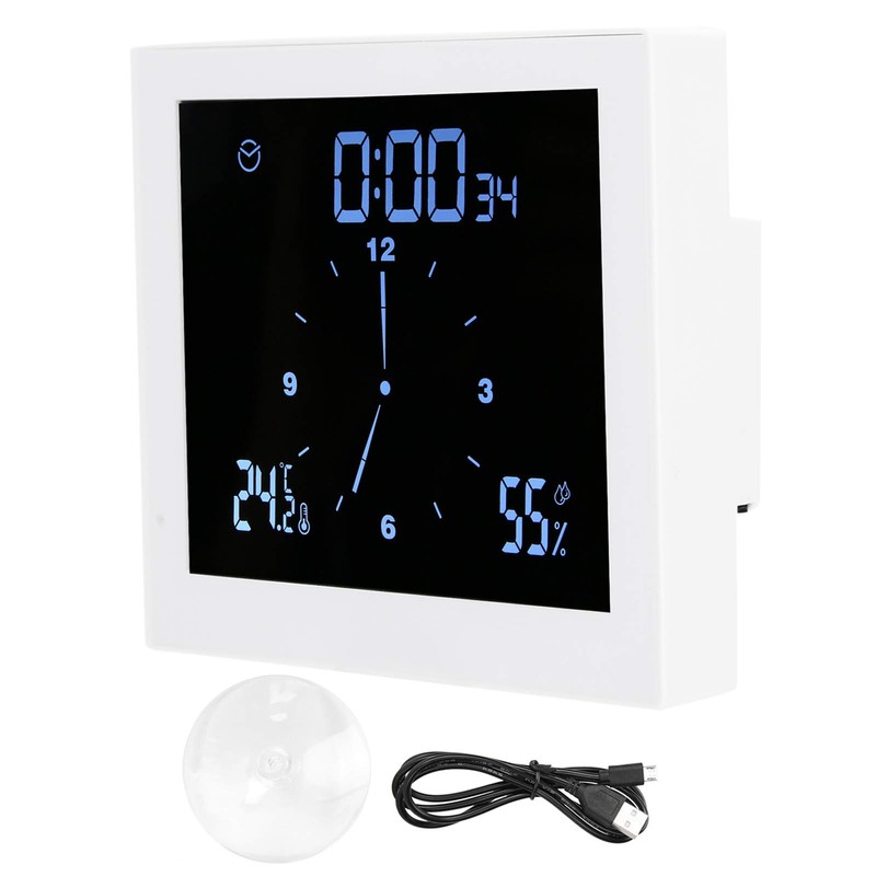 Ejoyous Bathroom Clock, Digital Bathroom Clock, Wall Clocks with LED Display, Waterproof Shower Clock, Bathroom Clock with Humidity Temperature, Countdown and Alarm Function (White)