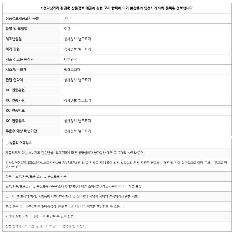반품/교환시 공급사에서 직접 수거접수하는 업체이며, 단순변심으로 인한 반품시 왕복배송비 6,000원 / 반품시 본 박스 훼손시 반품불가합니다. ![]() ![]()