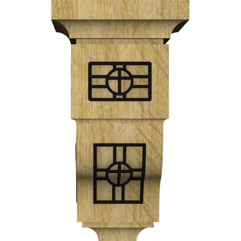 Ekena Millwork CORW05X05X10RYOSBLRO Medium Reyes w/ IronCraft Oslo Inlay Wood Corbels, 5"W x 5 3/4"D x 10"H, Red Oak