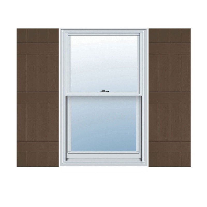 Ekena Millwork Lifetime Vinyl LJ4S14X05900FB Standard Four Board Joined, Board-n-Batten Vinyl Shutters, w/Installation Shutter-Lok's & Matching Screws (Per Pair), 14"W x 59"H, Federal Brown