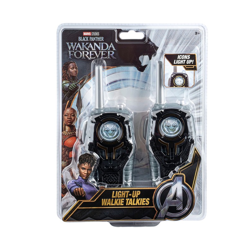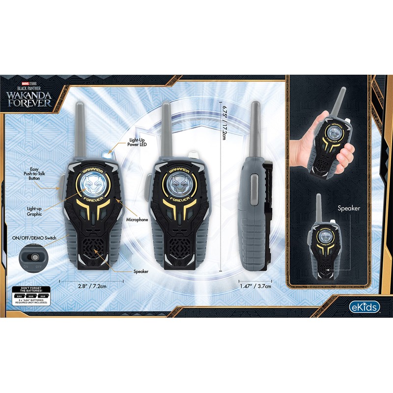 - Black Panther Design: Bring these cool toys on all of your adventures! Unique style and graphics of these two way radios are inspired by the new film, Wakanda Forever