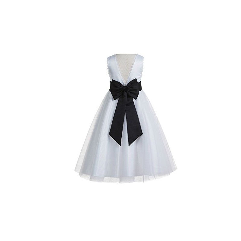 ekidsbridal V-Back Lace Edge White Flower Girl Dresses Black Baptism Dress Birthday Girl Dress Ball Gown 183T 8