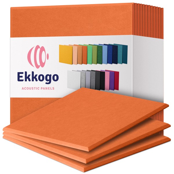 Ekkogo Acoustic Panels 12-Pack Soundproof Wall Panels 12"X12"X0.4" Sound Panels High Density Sound Dampening Panels - [Poppy Orange Square]