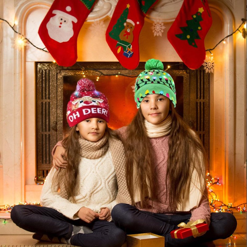 - Christmas Hats You will get 2 LED knitted hats, the double layer winter knitted hat LED keeps warm, the knitted hat is high elastic and fits most head sizes.