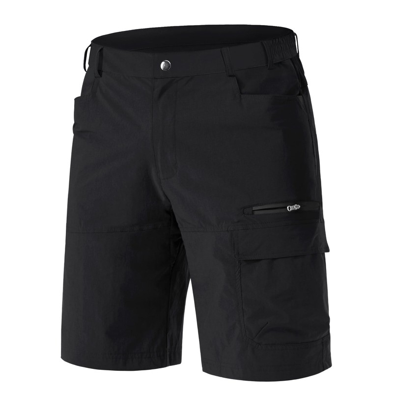 EKLENTSON Cargo Shorts Men Summer Hill Walking Shorts Quick Dry Lightweight Zip Off Outdoor Fishing Travel Safari Pants Black,30