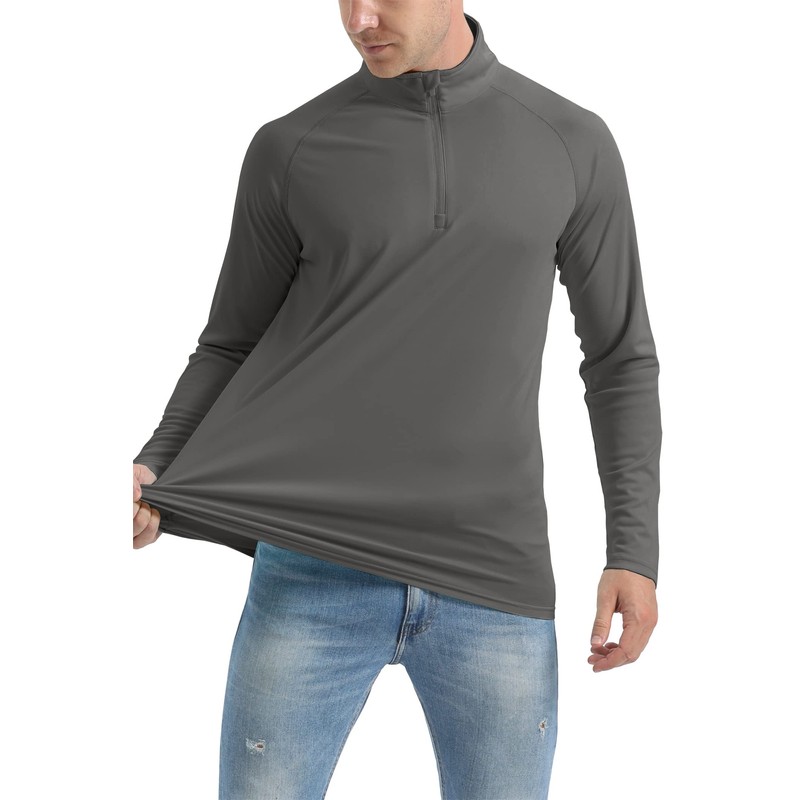 EKLENTSON Men's UPF 50+ Shirt Sun Protection 1/4 Zip Up Summer Sports Workout Fishing Walking Shirts,Dark Grey,M