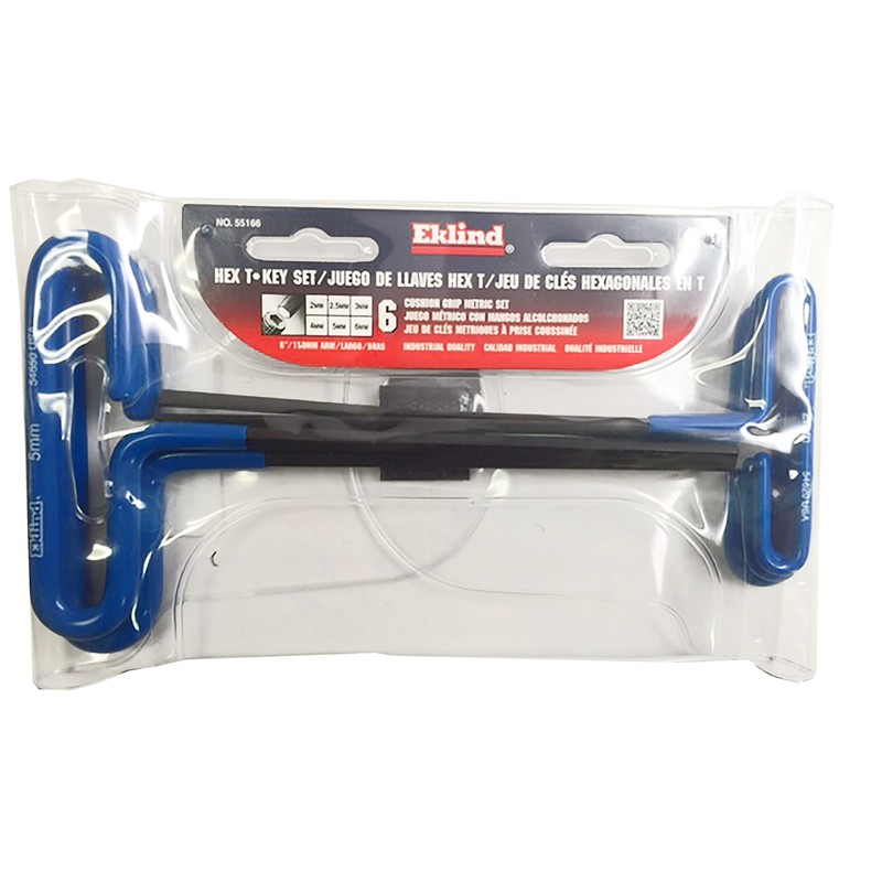 EKLIND TOOL COMPANY is America's leading manufacturer of high quality, industrial grade hex keys, made with pride in the U.S.A. since 1950. The EKLIND 55166 Cushion Grip Hex T-Key allen wrench - 6pc set Metric MM sizes 2-6 (6In shaft) meets the most stringent requirements of professional mechanics, tradespeople, do-it-yourselfers and hobbyists.