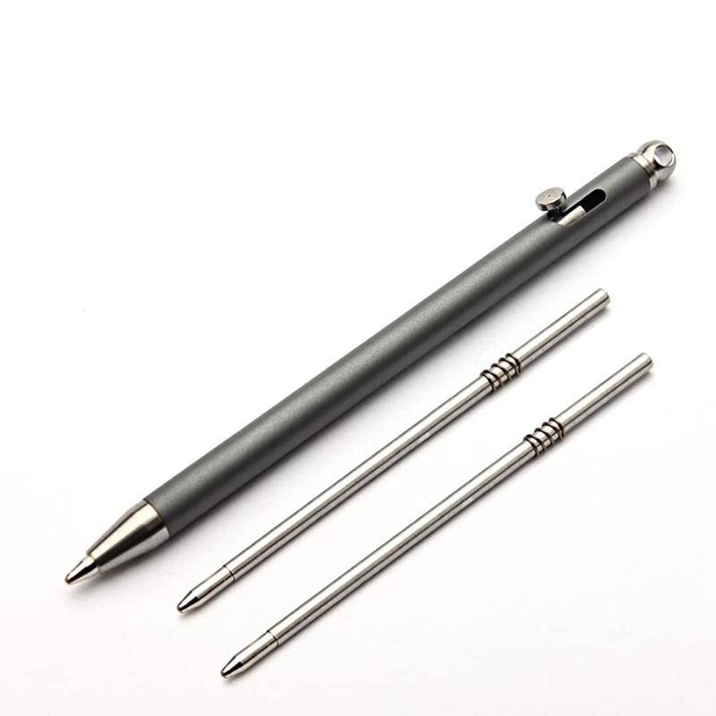 EKLOEN Mini Titanium Pen, Creative Signature Pen Bolt Action Pen Cool Keychain Accessories Useful Gadgets Outdoor Tool(Gray)
