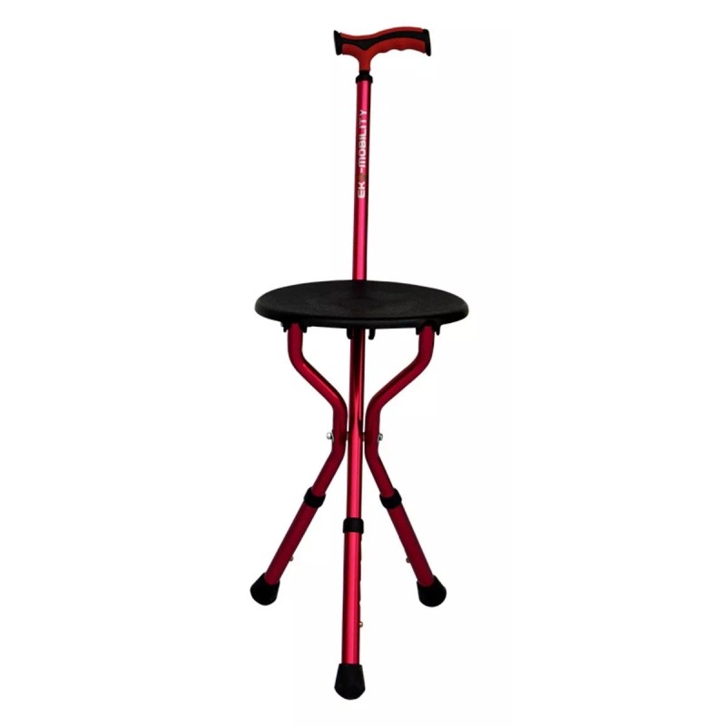 Este innovador bastón le ofrece al usuario descansar frecuentemente durante caminatas, ya que se convierte en un cómodo asiento.