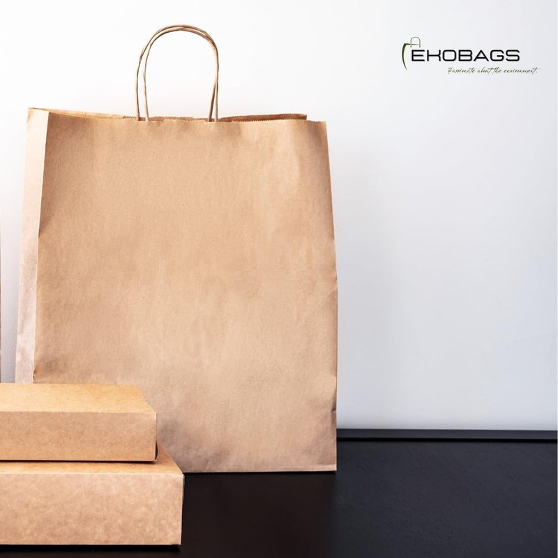 - EKOBAGS KRAFT PAPER BAGS with handles: Total 25 Pcs kraft bags.
