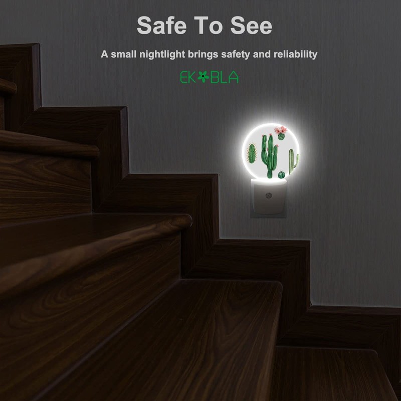 - 3. Function: this night light features sensitive dusk to dawn sensor, Auto On/Off according to ambient light; the small night light has perfect brightness providing warmer light and fewer lumens for easy on eyes. Just the right amount of light to see at night but without turning on the regular light.