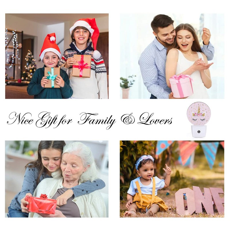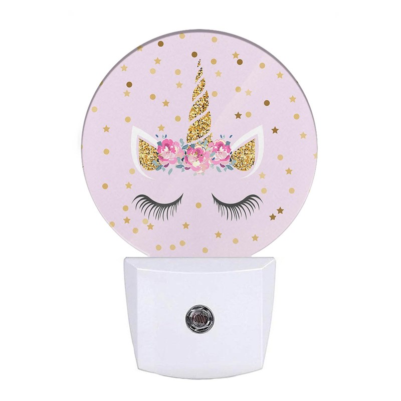 EKOBLA Unicorn Pink Night Light Gold Golden Polk Dots Stars Night Lights Plug into Wall with Dusk to Dawn Sensor Round LED Lamp for Teen Girls Fun Novelty Gift