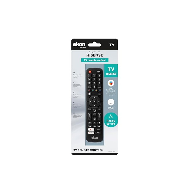 Ekon Hisense Universal Remote Control for TV and Smart TV, Replacement Remote Control with Intuitive Control, Shortcut Keys for Apps and Streaming Services, Ready to Use Without Installation