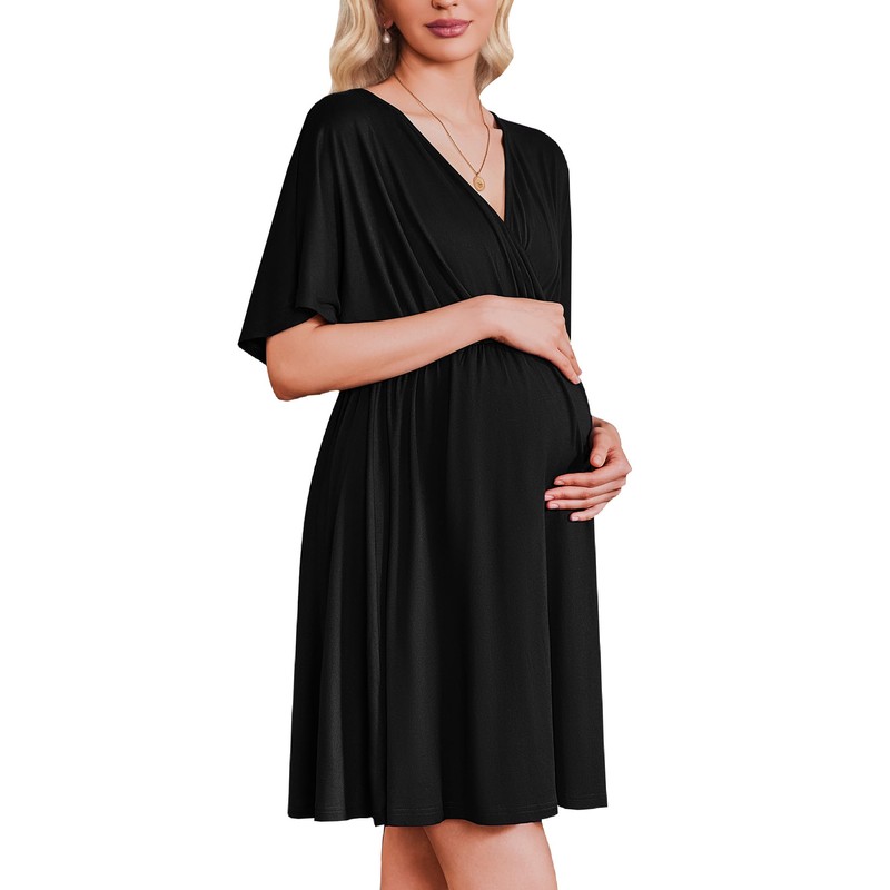 - Cross V-neck Design - The cross V-neck design makes breastfeeding easy and makes care easy. And it will cover your chest more completely. The loose-fitting elastic design allows enough space for the growth of the abdomen when wearing this maternity dress.