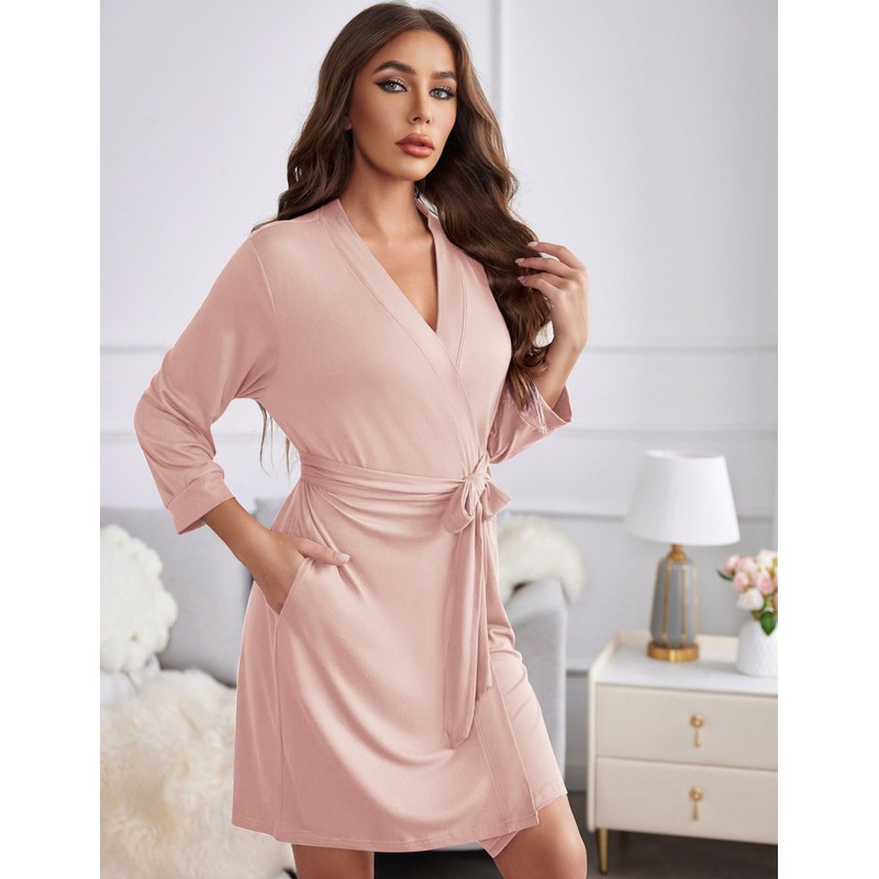 - Unique Design:The comfy and lightweight bath robe features 3/32 sleeves wrap design robe, It has an inside tie and the outside belt is connected to the robe so it won’t come off.The two side pockets are deep enough to hold your phone and some small accessories.