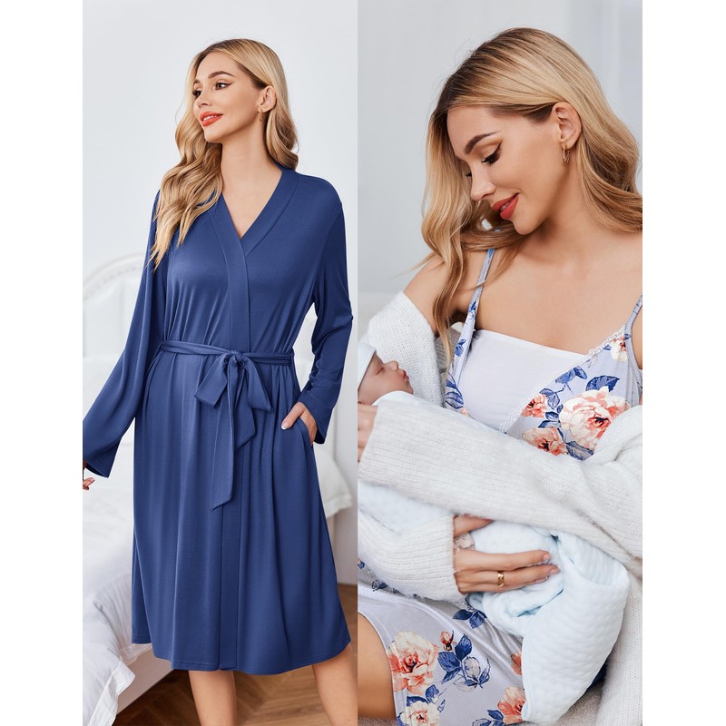 - ❤Nursing Nightgown and Robe Set- Maternity robe for hospital is perfect nightgowns for pregnancy, labor and delivery,and postpartum. During your nursing journey, breastfeeding robe will bring a comfy, breathable and soft wearing experience. Easy access for nursing, and easy access for skin to skin time with baby.