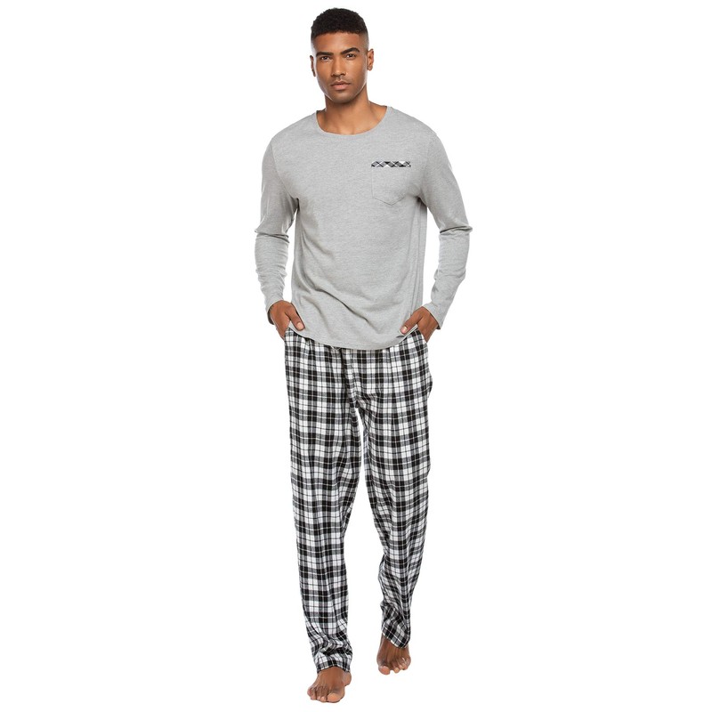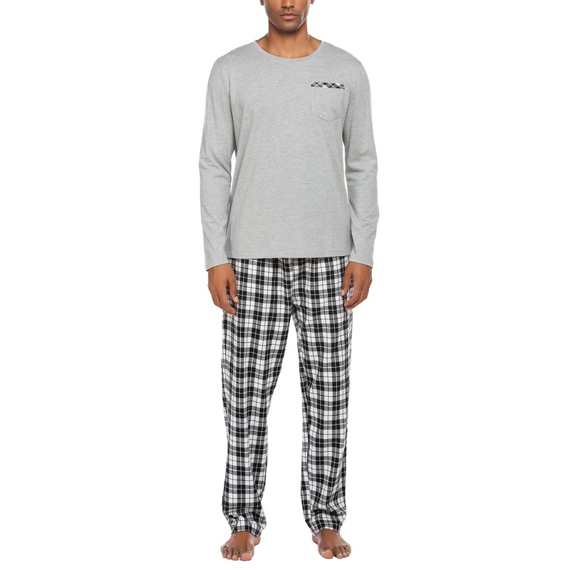 Ekouaer Men'S Pajamas Set Cotton Pyjamas For Men Long-Sleeve Soft Pj Sleepwear Top And Check Bottoms S-Xxl,Grey,XXL