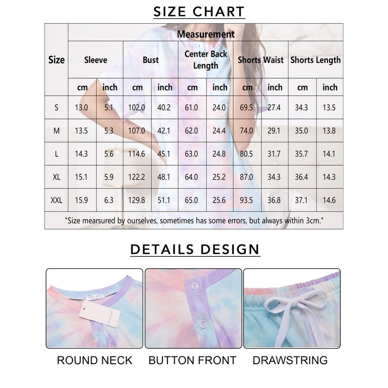 - Women Two Piece Pjs Set:Soft and comfy loungewear nightwear fits for all seasons. Sleep in the daily casual Short Sleeve sleepwear sets is not only ultra-comfortable but also stylish. Jersey material feels as smooth & light as air breathing on your skin. Classic crewneck with buttons, elastic drawstring waistband is easy to dress up or down