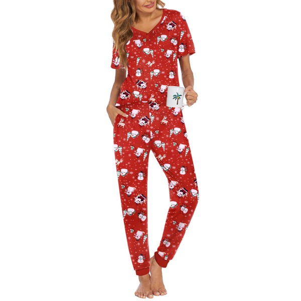 Ekouaer Pajamas Set Womens 2 Piece Lounge Set Short Sleeve Pjs Joggers Pants Sleepwear with Pockets