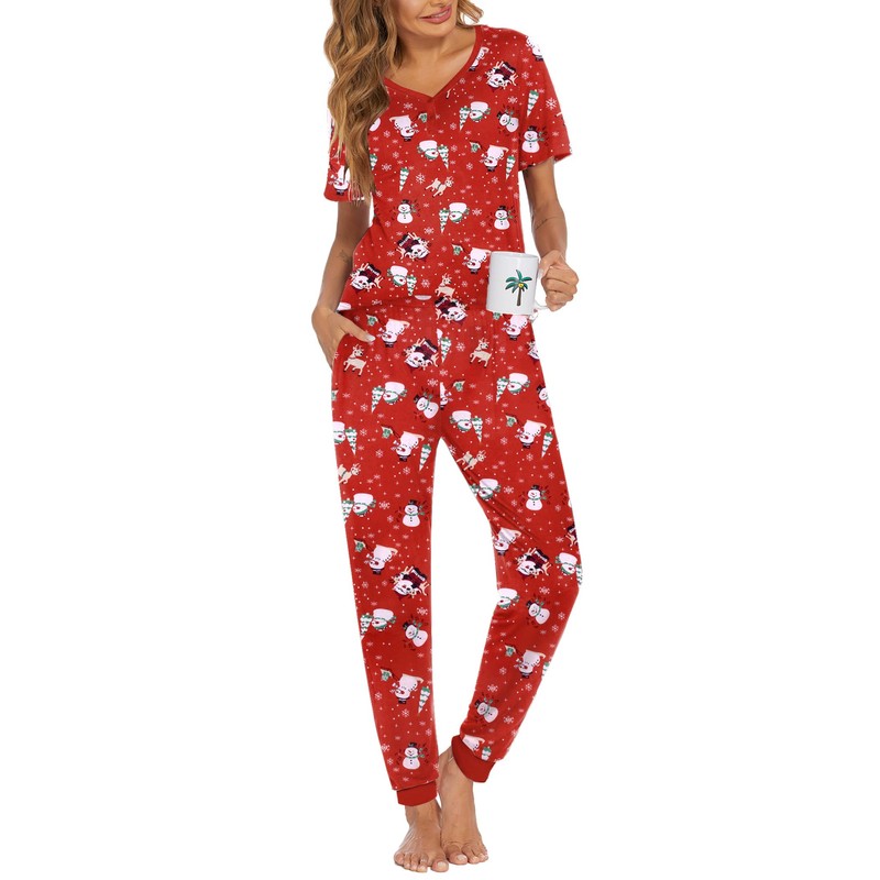 - Short Sleeve Tops: The sleepwear pj features with v-neck and button tops. Simple pullover styling for easy fit. Stylish and elegant ladies sleepwear night set