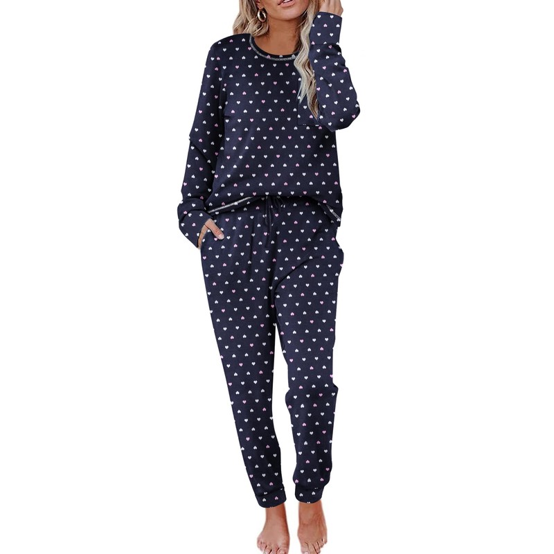 Ekouaer Pajamas Women's Long Sleeve Pj Set Soft 2 Piece Loungewear Sleepwear with Jogger Pants Heart Print,M