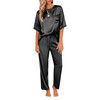 Ekouaer Pj set for Women Silk Pajamas Sleepwear Long Pant Pajama Set Soft Pajama Satin Pjs Loungewear Two Piece Short Sleeve Pj Set Black M