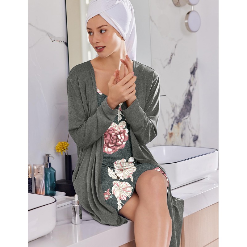 - 2 Pieces Robe Sets: Ekouaer robe sets for women includes a cami dress and a long cardigan. You can wear the cami dress alone as a nightgown, or pair it with the long sleeve robe or other outerwear at home to enjoy your leisure life.