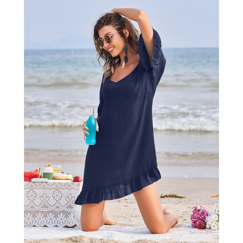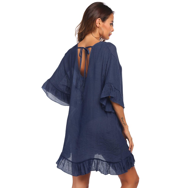 - Diseño delicado: la cubierta de playa para mujer viene con un sexy cuello en V profundo, lazo ajustable en la espalda, bonita media manga con volantes y dobladillo de hoja de loto fluido. Bonita ropa de playa que muestra tu atractivo en el viaje a la playa.