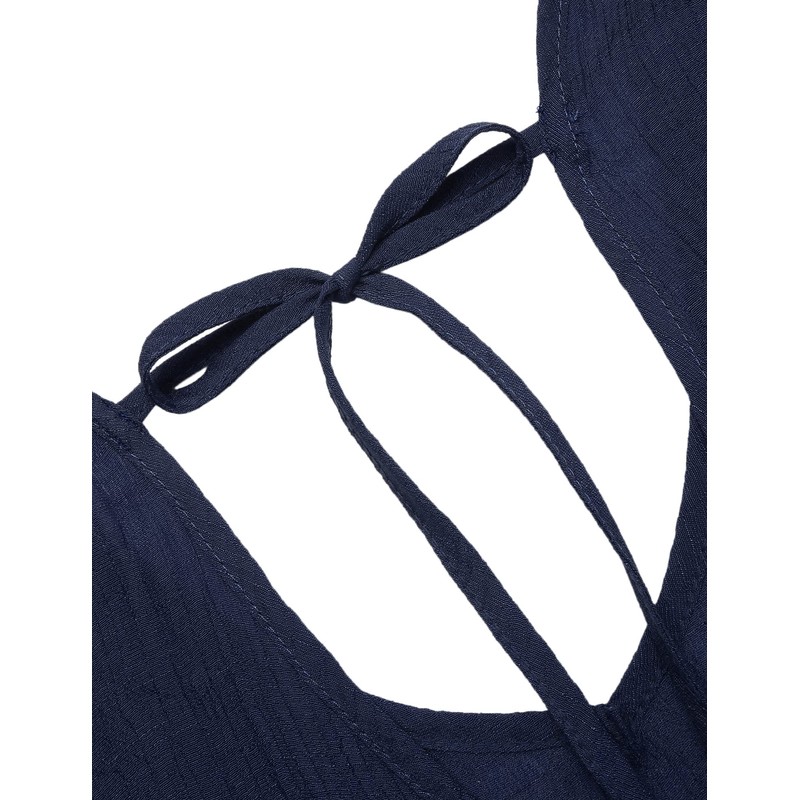 Ekouaer Traje de baño para mujer, sexy, cuello en V, vestido de traje de baño, mangas con volantes, ropa de playa, parte superior holgado, XS-3XL, marino, S