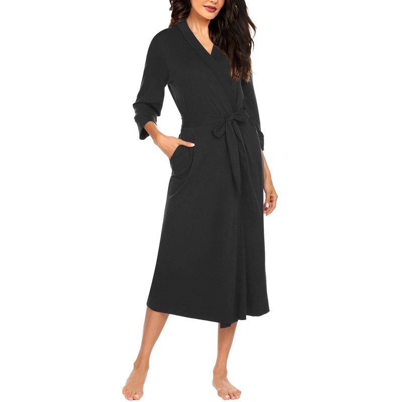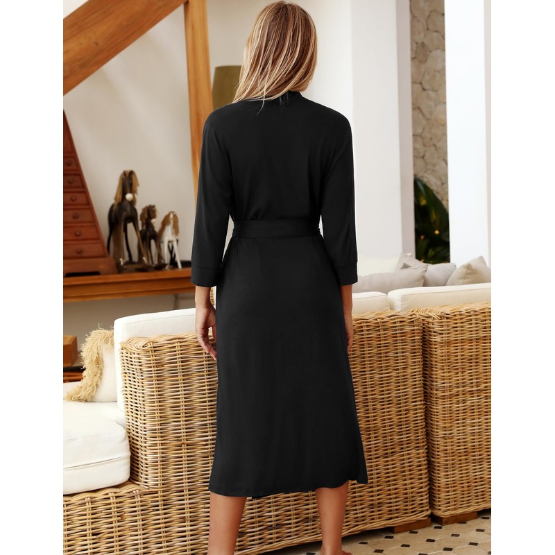 - Unique Design:This soft robe features 3/4 sleeves wrap design robe,mid-calf length,Waist front tie,Side pockets to keep your hands warm or to keep things close by your side while you are lounging in house.
