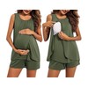 Ekouaer Womens Maternity Pajama Set Sleeveless Sleepwear Soft Lightweight Breastfeeding Pjs Army Green L